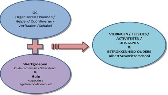 Uit elke groep neemt één ouder deel aan de OC. Deze ouders worden benaderd door het team. De OC komt vijf keer per jaar bijeen om taken te verdelen en ervoor te zorgen dat bij elke activiteit een commissielid betrokken is. Inhoudelijke of beleidsmatige onderwerpen worden niet besproken in de OC, maar horen thuis in de medezeggenschapsraad (MR).